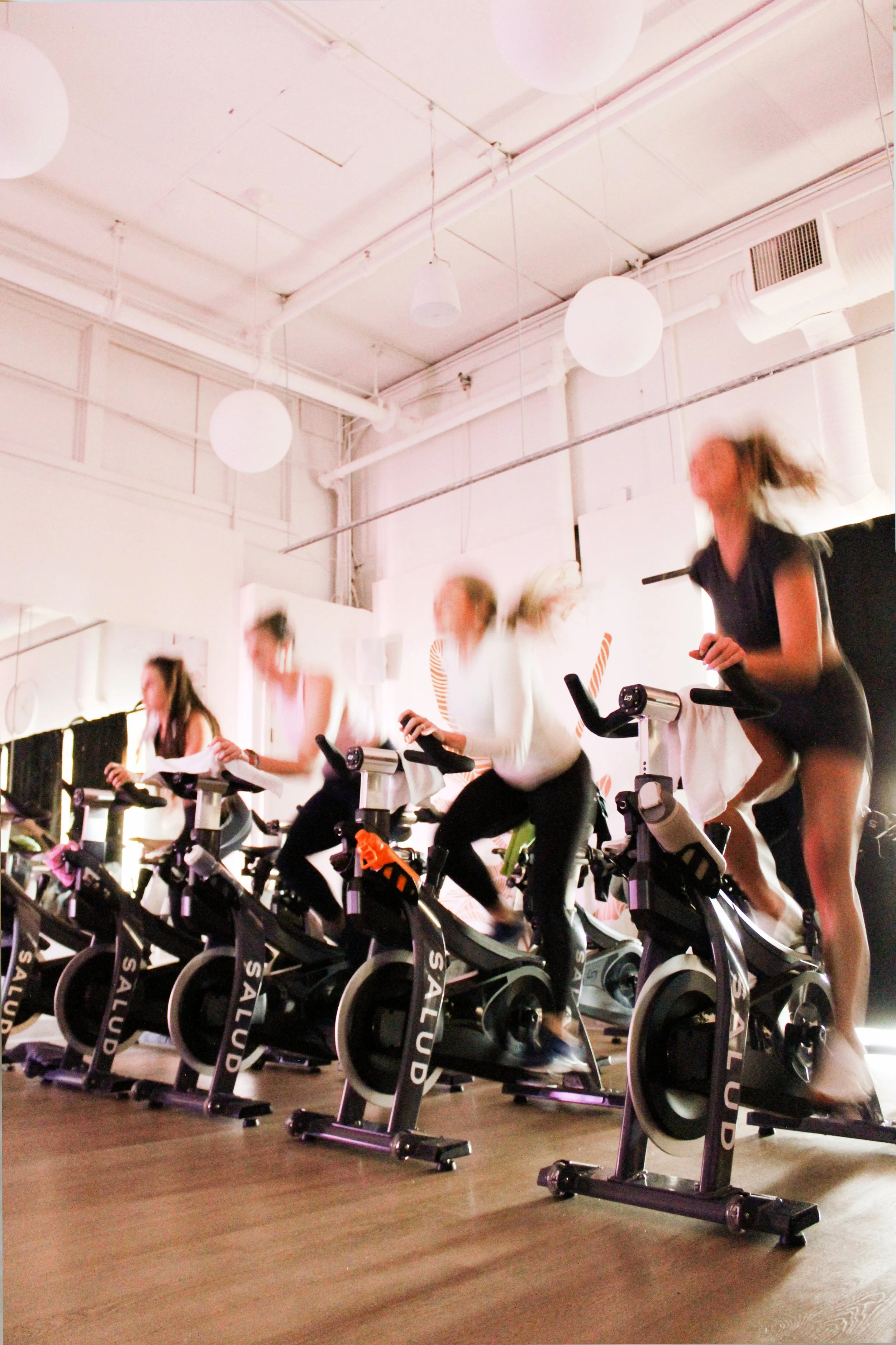 Salud Cycle offers 45-minute indoor rides that blend rhythm-based movement, endurance-focused efforts like steady climbs and sustained pushes, and accessible choreography—all set to empowering, motivating playlists. Classes are designed to challenge strength and stamina while staying fun and engaging, with options that also incorporate post-ride stretching and mobility work to release tension, reset posture, and support recovery, leaving you feeling energized, strong, and aligned.